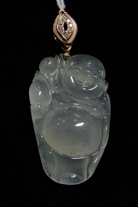 翡翠冰種佛公鑲18K掛件